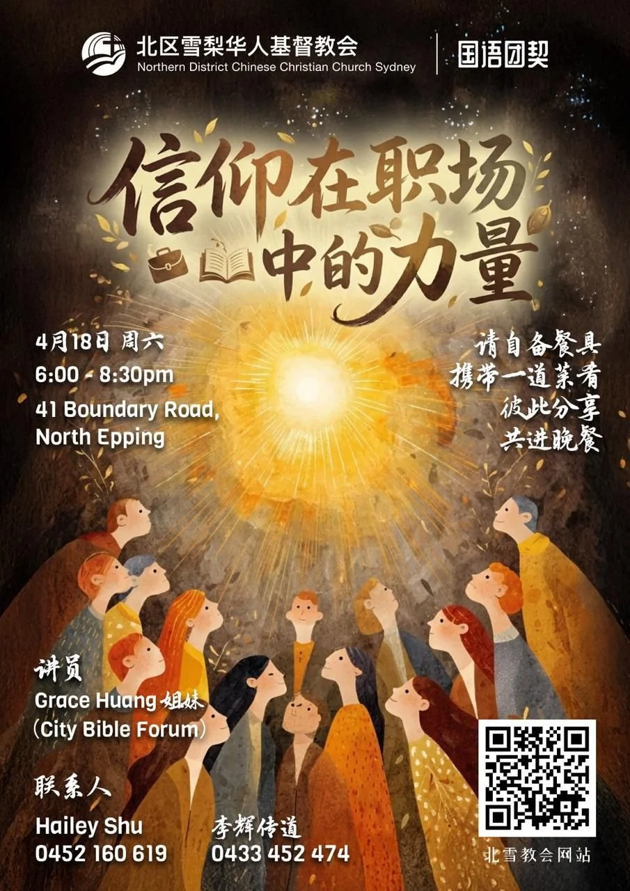 沒有參加實體崇拜的弟兄姊妹可以在教會網頁獲取講道錄音。https://www.ndcccs.org.au/zh/sermons